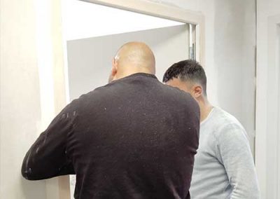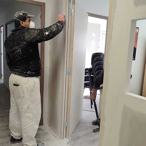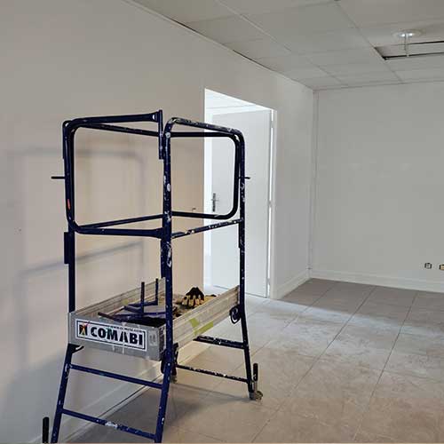 - Travaux de finition : enduit, ponçage, toile de verre, peinture, plinthes,